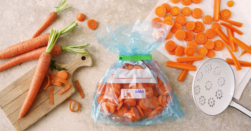 Den Spargel in den Toppits® SafeLoc® Gefrierbeutel geben und die Luft herauspressen. Den Beutel gut verschließen und einfrieren.